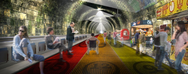 Als het aan Londense architecten ligt, zullen reizigers binnenkort via loopbanden naar hun bestemming worden gebracht.