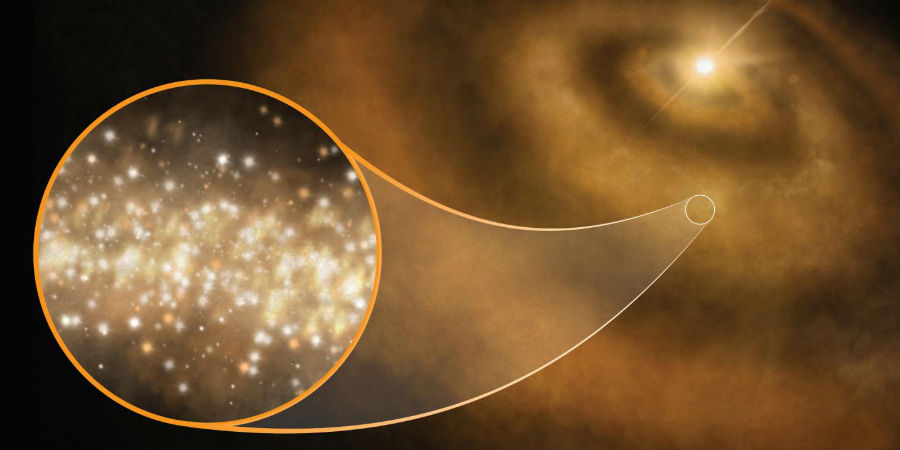 In die ‘protoplanetaire’ schijven, trof het team kleine hoeveelheden ‘nanodiamanten’ aan. Deze minuscule diamantjes, ongeveer één nanometer in doorsnede, zouden volgens de onderzoekers weleens iets met de straling te maken kunnen hebben. En even ter vergelijking: de diameter van de punt aan het eind van deze zin bedraagt ongeveer 500.000 nanometer – het gaat om héél kleine diamantjes dus.
