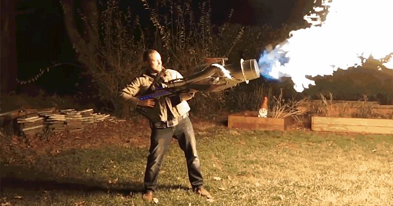 Als er één bouwsel het label ‘don’t try this at home’ moet krijgen, is het waarschijnlijk deze enorme vlammenwerper van YouTuber Jairus of All. Met behulp van krachtige ducted fans en vloeibaar propaan weet de doe-het-zelver een flinke vuurtornado te produceren. Jairus of All heeft de 500 dollar kostende vlammenwerper van Elon Musk helemaal niet nodig.