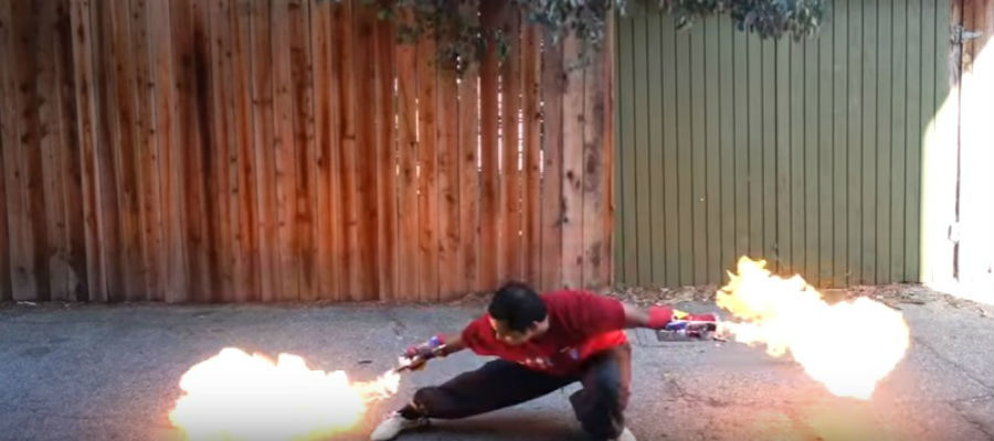 Om zijn speciale handschoenen te maken, verwerkte Pan een ‘butaandispenser’ erin. Verder gebruikte hij onderdelen van een elektrische aansteker en een bewegingssensor die ervoor zorgt dat bij elke stoot de handschoenen huiveringwekkende vlammen spuwen.