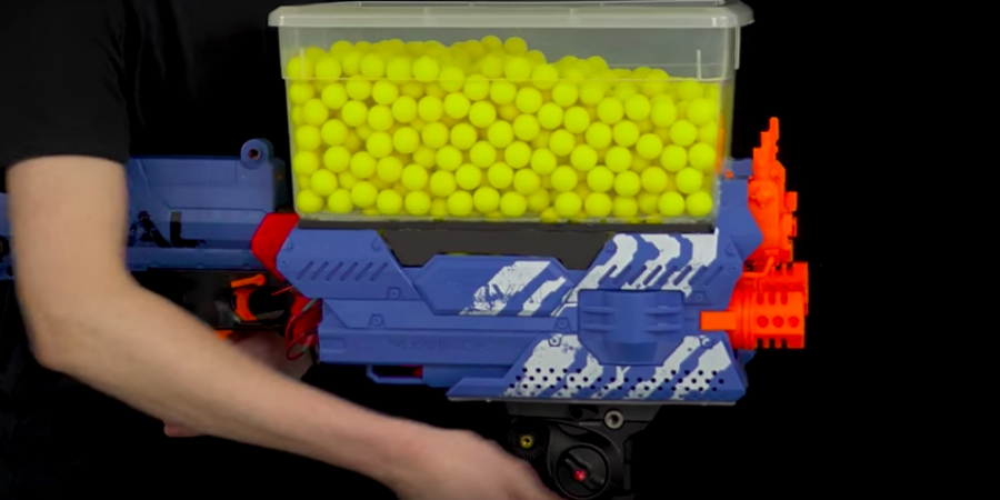 Oké, bigger is niet altijd better, maar in dit geval even wel. Deze doe-het-zelver bouwde namelijk een speelgoedgeweer om tot een exemplaar die een paar honderd rubberkogels achter elkaar afschiet.