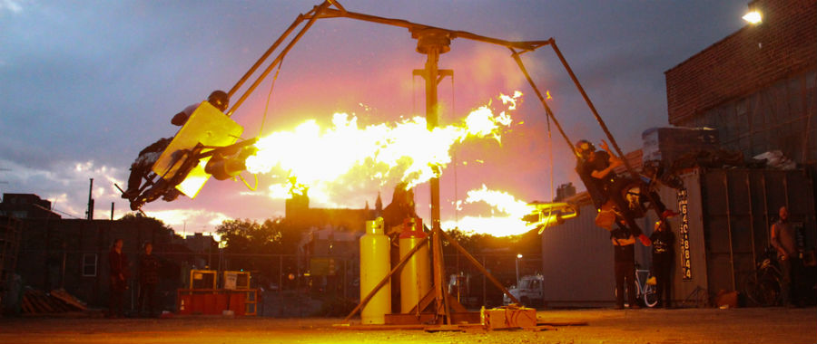 We hebben allemaal weleens in een zweefmolen gezeten. En die zwaait je meestal met een behoorlijke snelheid door de lucht. Maar niet snel genoeg voor het Madagascar Institute. Dit instituut maakt kunst van machines en besloot een zweefmolen uit te rusten met een straalmotor. En ja, dat ziet er net zo bizar uit als het klinkt.