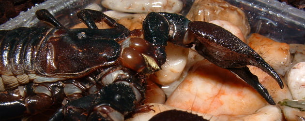 Dat is de conclusie van een onderzoek van Richard Laub, een paleontoloog verbonden aan het Buffalo Museum of Science te New York, en twee collega’s. Zij berekenden dat de zeeschorpioenensoort Acutiramus met zijn scharen een maximale kracht kon uitoefenen van 5 newton. Zou het dier harder dan dat hebben geknepen, dan hadden zijn scharen dat niet overleefd.
