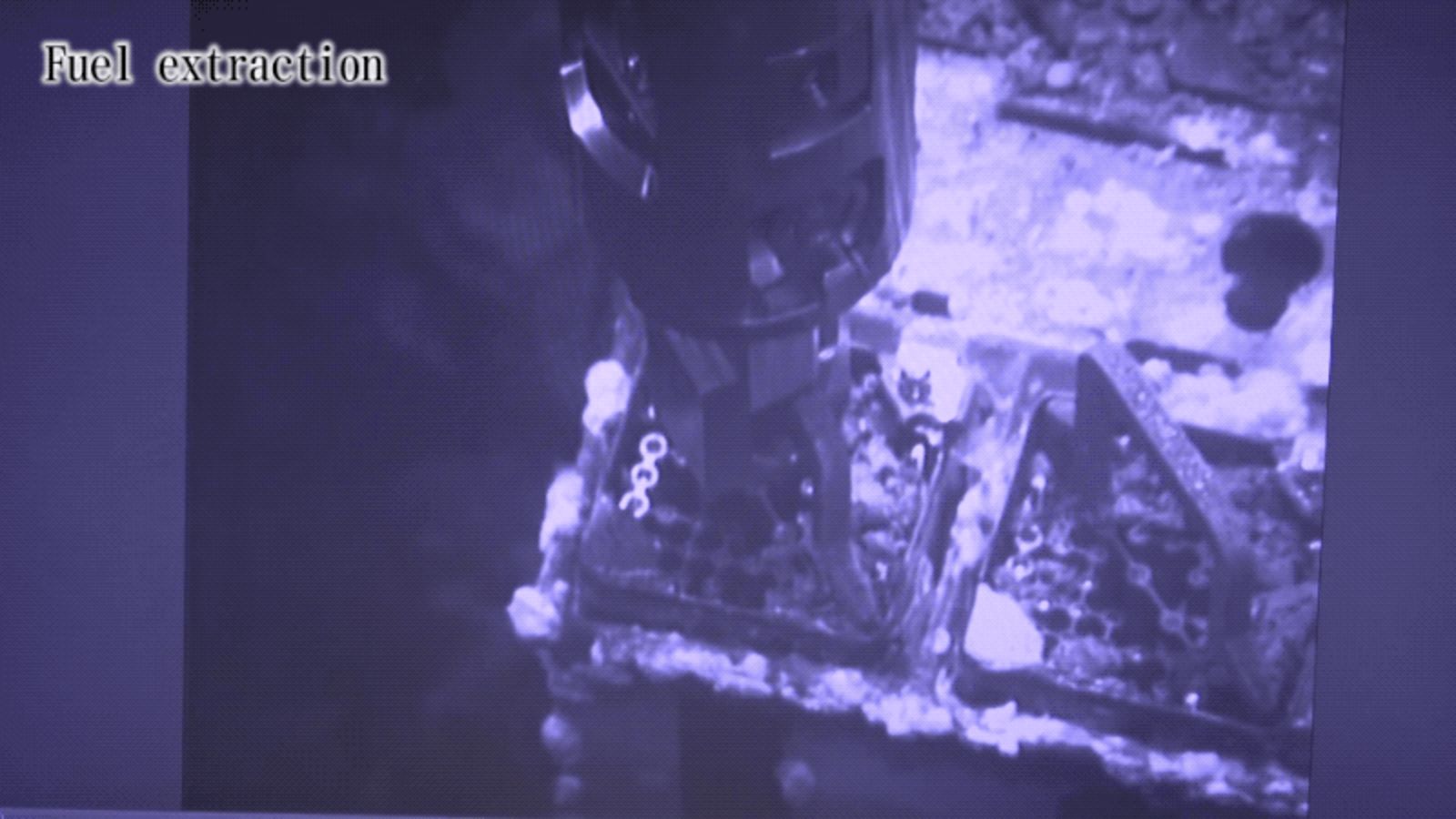 De hijskranen werken overigens onder water om te voorkomen dat straling naar buiten lekt. Hoe deze operatie eruit ziet? Zo: