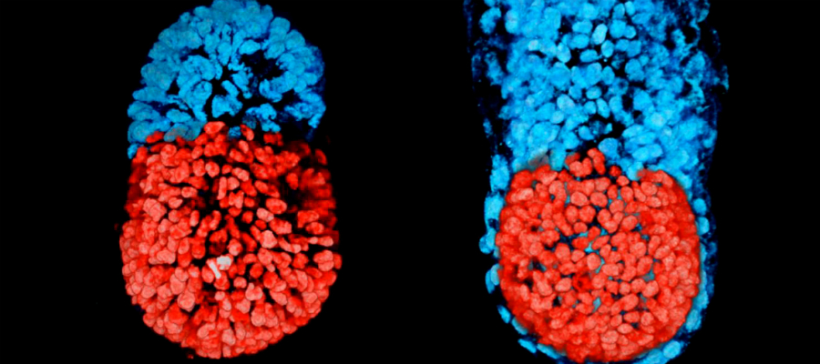 Wetenschappers zijn erin geslaagd uit twee typen stamcellen een structuur te laten groeien die lijkt op een muizenembryo.