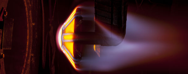 Maar werkt de technologie ook? Ja, zo zou blijken uit de proeven van NASA. Op de foto is een van de laatste testen te zien die worden uitgevoerd in het Ames Research Center. Extreme hitte wordt tijdens deze proef richting het 2-meter-brede schild geblazen. De oppervlakte van het schild bereikt uiteindelijk een temperatuur van 1700 graden Celsius.