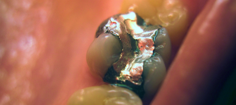 Als je te veel suiker eet, heb je kans op gaatjes in je tanden. Heb je eenmaal een gaatje, dan staat het binnenste van je tand (de pulpa) bloot en is er kans op infectie. En dus probeert je lichaam zo snel mogelijk een laagje tandbeen te produceren om de pulpa te beschermen. Bij grotere gaatjes kan je lichaam het niet meer bijbenen en beland je bij de tandarts, die het gaatje kunstmatig moet vullen (soms met amalgaam, zie foto boven dit bericht).