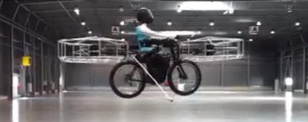 Een Tsjechisch team heeft een vliegende fiets gebouwd en er zelfs al een testvlucht mee uitgevoerd.