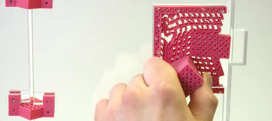 De oplossing ligt verstopt in de structuur van de cellen waaruit een product is opgebouwd. Door cellen te maken die plat gaan liggen als er druk op komt te staan, kan er een gecontroleerde beweging plaatsvinden. Ion noemt deze cellen ‘shear cells’ en kan ze met behulp van een gespecialiseerd computerprogramma geheel naar wens opbouwen. Zo kan ze de cellen, afhankelijk van hun taak, stijver of flexibeler maken.