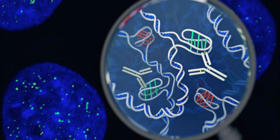 Zo hebben ze nu dus antilichamen ‘geprogrammeerd’ zo dat ze alleen aan de i-motif structuren bonden. Ook zorgden ze ervoor dat de antilichamen fluoresceerden, zodat de wetenschappers ze na inbrengen in menselijke cellen in het lab met een microscoop konden volgen.