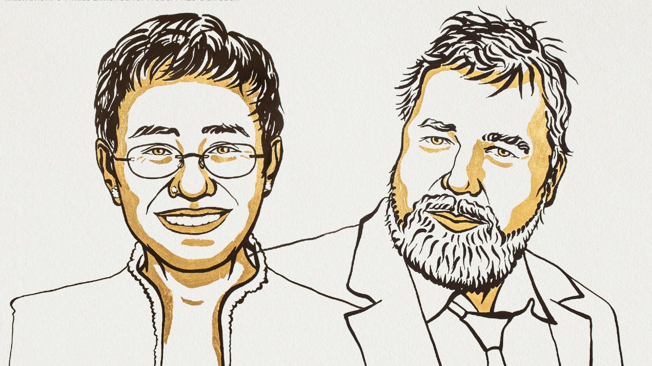 Voor hun kritische onderzoeksjournalistiek waarmee ze strijden voor het vrije woord, kregen Maria Ressa en Dmitry Muratov de Nobelprijs voor de vrede.