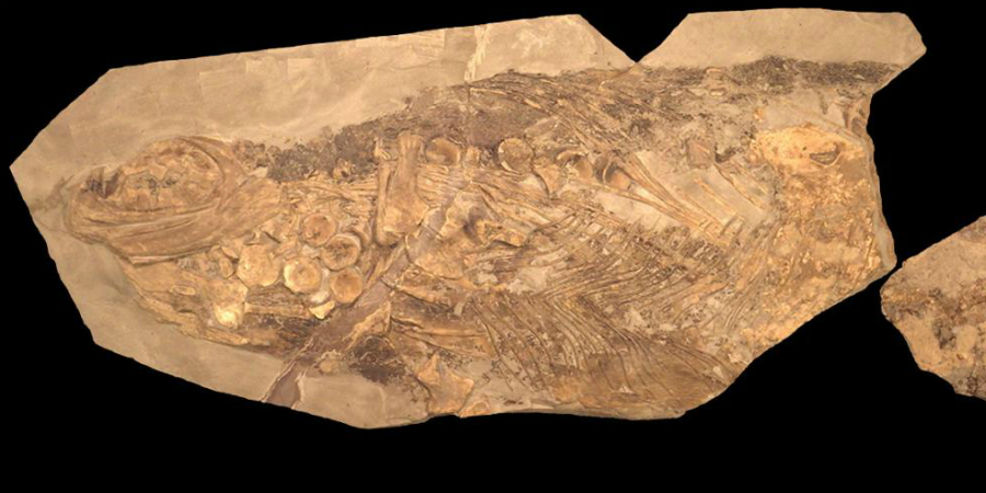 Het 85 centimeter lange, 180 miljoen jaar fossiel is extreem goed bewaard gebleven. Met een scala aan nieuwe technieken waren onderzoekers in staat de cellulaire en moleculaire samenstelling van bepaalde weefsels te achterhalen. Bron: Johan Lindgren/Nature