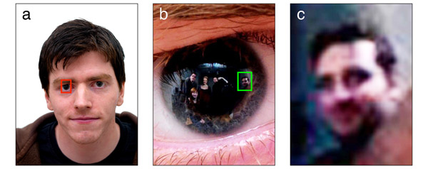 Britse wetenschappers hebben laten zien dat je mensen die worden gereflecteerd in de ogen van een gefotografeerde heel aardig kunt identificeren.