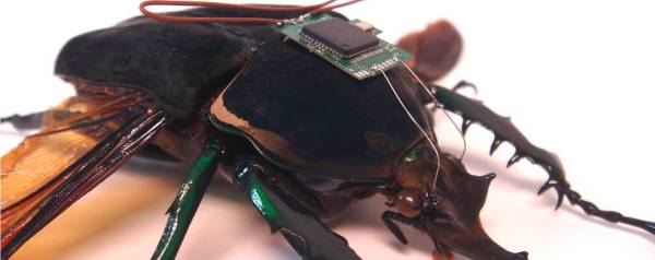 Om een radiografisch bestuurbaar insect te krijgen dat zijn eigen energie opwekt, hebben onderzoekers van de universiteiten van Michigan en Salt Lake City piëzo-elektrische elementen tussen de bewegende delen van een kever gezet. Door de vleugelbewegingen werd vervolgens een vermogen tot 45 microwatt gegenereerd. Die energie gebruikten de wetenschappers voor pulsjes die hersengebieden van het insect stimuleerden, zodat het dier precies deed wat ze wilden.