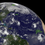 - Orkaan Irene op maandag 29 augustus, inmiddels boven Québec en Newfoundland (Canada). Verder te zien: de tropische storm Jose en de net gevormde Tropische Depressie 12.