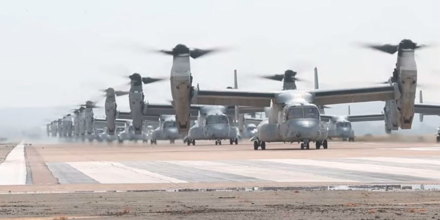 Toch liet de Osprey onlangs weer even ‘van zich horen’ toen 27 exemplaren van het toestel samen met 16 Sikorsky’s een zogeheten elephant walk uitvoerden. De show vond plaats op het Marine Corps Air Station Miramar, de voormalige basis van het TOPGUN-programma van de Amerikaanse marine.