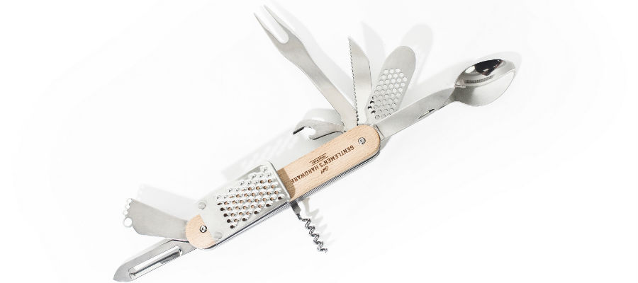Met de Kitchen Multi Tool van Firebox heb je een hele keukenla in één enkele gadget. Van kaasschaaf tot lepel en van knoflookperser tot vork en van blikopener tot snijmesje: het zit er allemaal in en op en aan. Twaalf hoogwaardige en roestvaststalen kitchen utensils, waarmee je zonder problemen zelfs de meest weerbarstige magnetronmaaltijdverpakkingen open kunt krijgen.
