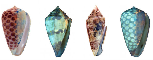 De meeste soorten bleken kleurpatronen te hebben die overeenkomen met die van hun moderne soortgenoten. Er was een opmerkelijke uitzondering; de Conus carlottae (de linkse schelp op de afbeelding) bleek bedekt met polkadots. Een dergelijk patroon komt volgens Hendricks niet voor bij moderne schelpen.