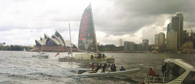 In maart vertrok het van plastic flessen gemaakte schip Plastiki uit San Francisco. Gisteren bereikte het na een 15.000 kilometer en 130 dagen lange reis zijn eindbestemming: de haven van Sydney.