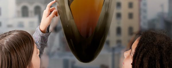 De ‘stadsbijenkorf’ is een concept dat werd ontwikkeld in het kader van het Microbial Home-project, waarbij werd gekeken naar manieren om kleine ecosystemen in huis te brengen. Het ding bestaat uit twee delen: de Urban Beehive zelf komt binnenshuis te hangen en de bijbehorende pot met bloemen (zie de foto beneden) buiten. (Inderdaad: er moet dus een gaatje in het raam worden gemaakt en dat zal lastig worden als je thermopane hebt.) Volgens de producent is de ‘korf’ gemaakt van speciaal gekleurd glas dat alleen licht doorlaat waar de bijen geen last van hebben.