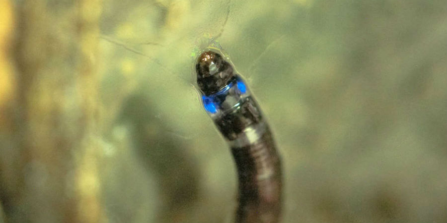 Nu hebben onderzoekers per toeval het eerste insect in Zuid-Amerika ontdekt dat blauw licht uitzendt. Neoceroplatus betaryiensis – de larve van een knutje (een type mug) – lijkt een blauwtje te hebben gelopen, maar heeft dus een gloeiend achterste. De volwassen mug doet overigens niet aan bioluminescentie.