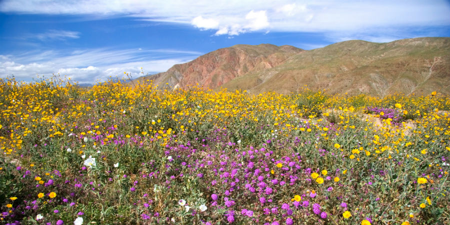 Dat je een droge woestijn niet zo snel associeert met bloemen is logisch. Toch gebeurt het vaker dan je denkt. Zo schreven we eerder al over de Atacama-woestijn in Chili die toentertijd vol paarse bloemen stond. En opnieuw zijn er prachtige foto’s van een dorre zandvlakte die in bloei staat, dit keer de Anza-Borrego-woestijn in Californië.