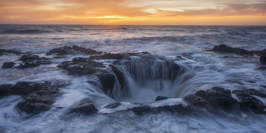 De ‘bron’ – die zich voor de kust van de Amerikaanse staat Oregon bevindt – is nog wel het spectaculairst tijdens vloed. Dan schiet water van onderaf met veel kracht naar boven, resulterend in een woeste zeefontein. Thors bron is niet voor niets een geliefde plek voor fotografen. Dat het dan oppassen is geblazen, spreekt voor zich.