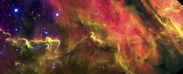 Los daarvan is het natuurlijk gewoon weer een schitterende plaat, zij het met een kanttekening. Het is namelijk niet zo dat de nevel daadwerkelijk de kleuren heeft die hier te zien zijn; het blauw is bijvoorbeeld in werkelijkheid rood, terwijl het rood en het groen corresponderen met de golflengtes van licht dat wordt uitgezonden door de elementen waterstof en zwavel. Dat het Gemini-observatorium de foto omschrijft als “psychedelisch”, zegt dus op zich meer over de keuzes die de betrokken astronomen maakten bij hun waarneming dan over de nevel zelf.
