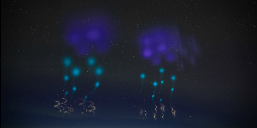 Naast metingen te verrichten aan de atmosfeerdichtheid en de temperatuur, dropten de raketten tijdens hun vlucht ook doses trimethylaluminium (TMA) en barium-strontium mengsels. Beide goedjes ioniseren wanneer ze worden blootgesteld aan zonlicht – en dat was te zien. De ontlading van deze markers leidde tot kleurige, aurora-achtige nevels waarmee de onderzoekers vervolgens de stroom van de deeltjes – zowel de geladen als ongeladen – konden volgen.