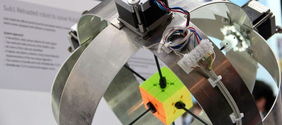 Hoe de bot dit in vredesnaam voor elkaar krijgt? De computer maakt twee foto’s van de kubus, waardoor hij de kleuren op elke zijde kan scannen. Vervolgens berekent Sub1 Reloaded de snelste oplossing met behulp van een speciaal algoritme. Deze oplossing wordt doorgeseind aan een Arduino microcontroller die de bewegingen in gang zet.