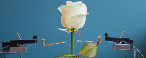 Van cyborg-mensen kijken we niet meer zo op, maar cyborg-planten? Deze roos kreeg een elektronisch circuit ingebouwd.