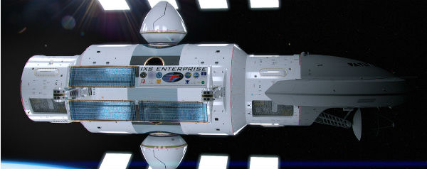 Hoe dan ook ziet White’s werk – dat zich op papier en een beetje in het lab afspeelt – er nog niet bepaald Star Trek-achtig uit. Mooi dus dat Rademaker in de periode van oktober 2012 tot en met eind mei 2014 zo’n 1600 uur werk stak in een realistische weergave van een ruimteschip uitgerust met de Alcubierre/White-drive. Daarbij riep hij de hulp in van grafisch ontwerper Mike Okuda, vooral bekend van zijn werk voor Star Trek: The Next Generation. Het zal dan ook niemand verrassen dat het schip de IXS Enterprise is gedoopt.