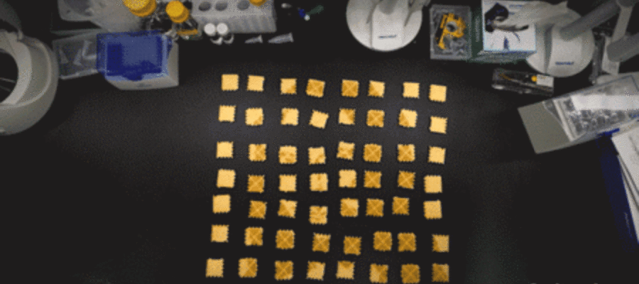 Om dit te kunnen doen, zouden elk van de nietjes die aan de zijkant van zo’n vierkantje zitten uniek in DNA-bouwsteenvolgorde moeten zijn. Alleen dan weet je zeker dat ze maar aan één ander vierkantje kunnen binden en zo op de juiste positie in het mini-schilderij eindigen. Maar het gaat hier om honderden nietjes en ze elk uniek maken is ingewikkeld en bovendien erg duur.