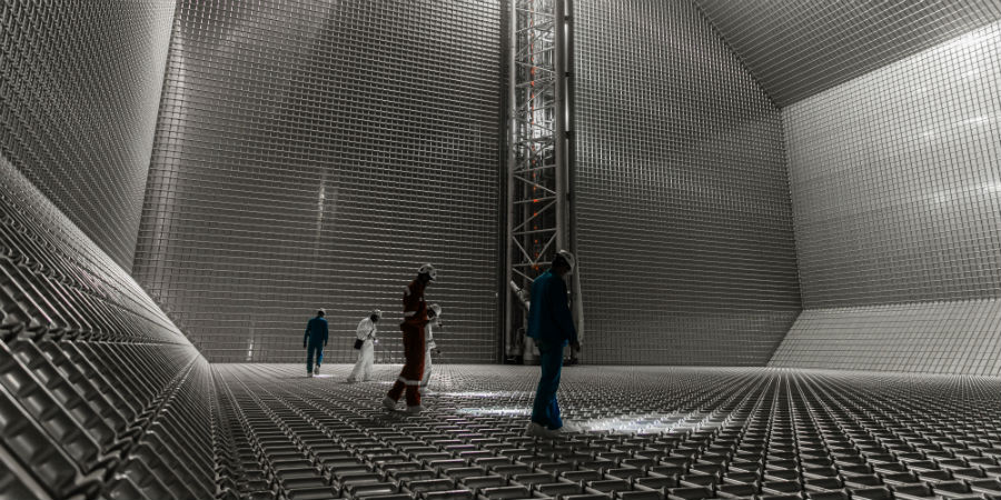 Een daarvan, gemaakt door het Franse bedrijf Gaztransport & Technigaz, zie je hier op de foto. In zo’n tank is ruimte voor maar liefst 25.000 tot 50.000 kubieke meter. Schepen die LNG naar de havens vervoeren waar het gas wordt verwerkt, hebben gemiddeld vier van deze gigantische units waarin mensen lijken te veranderen in mieren.