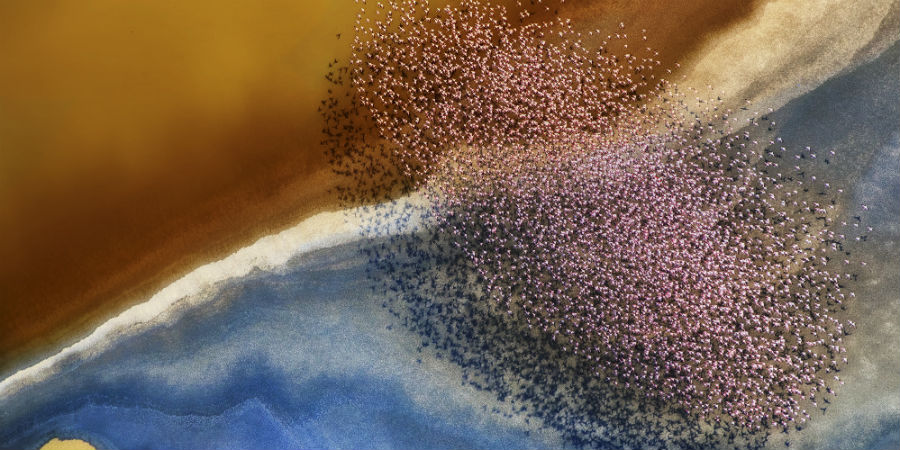 Er is niets zo ontspannend als een warm bad. Daar zijn de kleine flamingo’s (Phoeniconaias minor) het helemaal mee eens. Ze scharrelen dan ook vol overgave rond in het Natronmeer in Noord-Tanzania, waar het water temperaturen van boven de 40 graden Celsius bereikt.