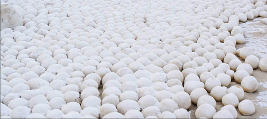 De kust van de Obboezem in Siberië ligt vol met sneeuwballen. De witte ballen liggen verspreid over 18 kilometer strand en sommige daarvan hebben een doorsnede van een meter. Maar in tegenstelling tot wat je misschien zou verwachten, zijn ze niet door mensen gemaakt. Deze sneeuwballen zijn aangespoeld vanuit de zee.