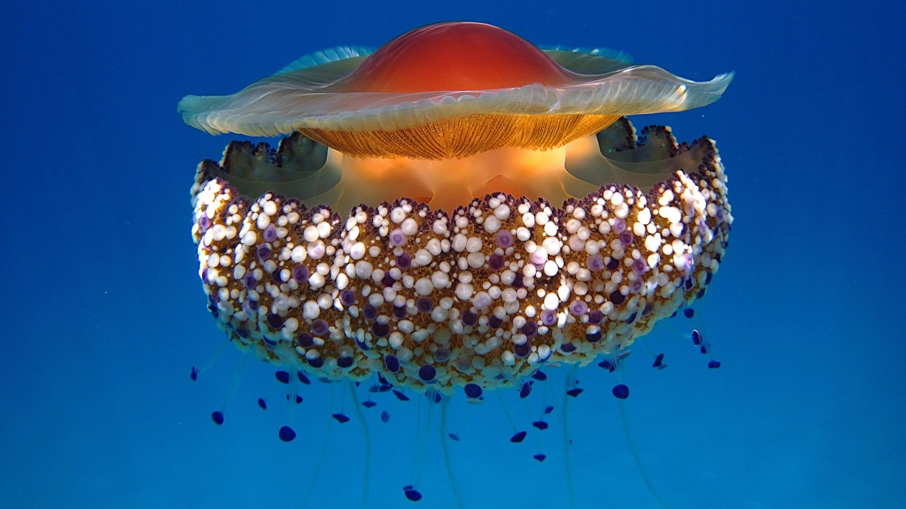 Mocht je ooit een duik nemen in de Middellandse Zee, dan kan het zijn dat je een ontbijtje rond ziet drijven. Maar laat je niet misleiden. Van een afstandje lijkt de Cotylorhiza tuberculata misschien wel op een gebakken ei, maar in feite is hij een kwal. Deze spiegeleikwallen kunnen tot 35 cm in doorsnee worden en hebben acht armen waaraan wel honderden tentakels hangen.