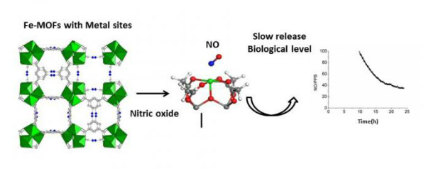 Wetenschappers hebben nu echter laten zien dat ze stikstofmonoxide kunnen verpakken in een metaal-organisch raamwerk. Ze hebben aangetoond dat stikstofmonoxide goed hecht aan de verpakking en dat die binding het beste is wanneer een deel van de ijzeratomen in het molecuul wordt gereduceerd van ijzer-3 tot ijzer-2.