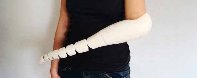 De ontwerper, Kaylene Kau, werkte niet aan een hypermoderne armprothese. Juist de eenvoud van haar ontwerp maakt het zo effectief. De gebruiker kan de ‘arm’ in de gewenste positie brengen en met een druk op de knop (net onder de elleboog) draait deze om een voorwerp. Door het flexibele ontwerp kan de arm allerlei voorwerpen oppakken.
