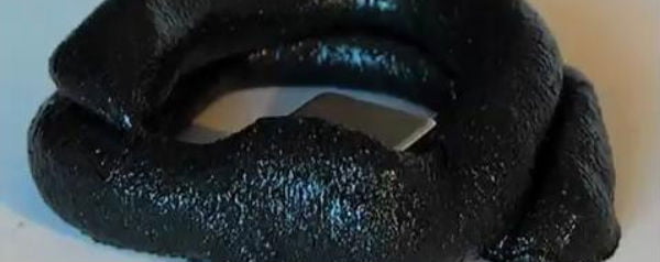 Magnetic putty wordt het genoemd, of in goed Nederlands: magnetische stopverf. Wat het is: een dikke brij met daarin een grote hoeveelheid kleine magneetjes, die, als je het spul even hebt gekneed, alle kanten op wijzen. De putty is daardoor netto niet meer magnetisch. Maar leg je hem vervolgens neer in de buurt van een gewone magneet, dan worden al die kleine magneetjes weer in het gareel gebracht: de blob raakt gemagnetiseerd… en komt in beweging. En dat levert leuke time-lapsefilmpjes op.