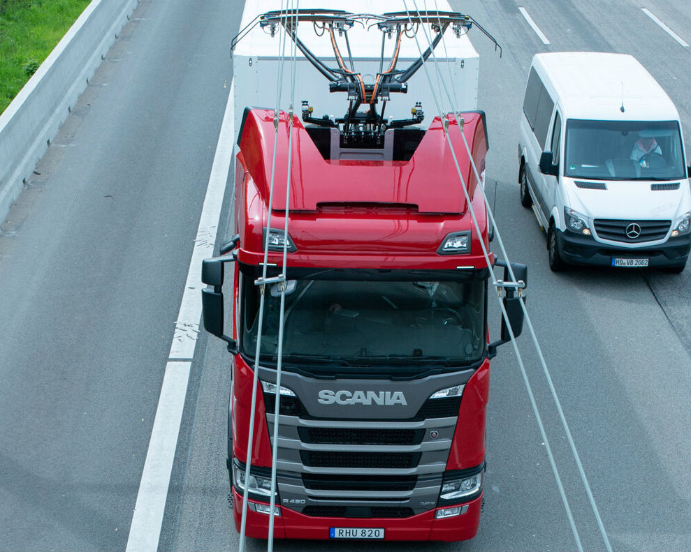 Vrachtwagens zijn van al het wegverkeer de zwaarste vervuilers. Volgens het Europese Milieuagentschap zijn ze verantwoordelijk voor 27 procent van de CO2-uitstoot op de weg. In Duitsland denken ze voor dit probleem een milieuvriendelijke oplossing te hebben bedacht: een snelweg met bovenleidingen om hybride vrachtwagens van stroom te voorzien.