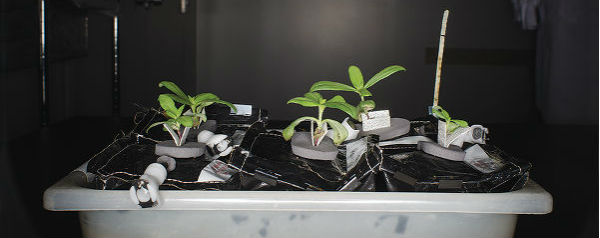 VEGGIE heeft een soort kas gemaakt waarin de astronauten sla kunnen verbouwen. Onder een fel paars LED-licht groeien de kropjes sla erg snel: na 28 dagen zijn ze klaar om te oogsten.