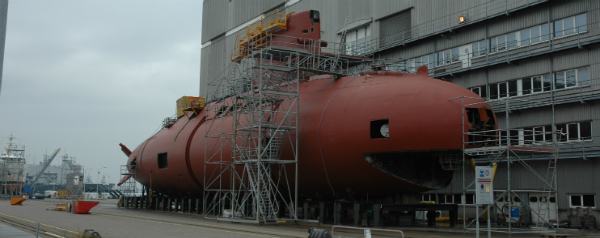 Drukhuid: De romp van de onderzeeboot is misschien wel het belangrijkste onderdeel van de boot. Alle oude verflagen worden met hogedrukspuiten (3600 bar) verwijderd. Daarna wordt de drukhuid geïnspecteerd en kunnen de nieuwe verflagen erop.