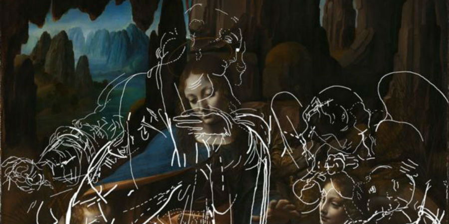 Al in 2005 ontdekten onderzoekers dat er onder het schilderij dat in Londen hangt nog een ander werk zat verborgen. Zo was op die schets de houding van Maria anders. Maar hoe de andere figuren waren getekend, kon het team met de technologie die toen voorhanden was niet achterhalen.