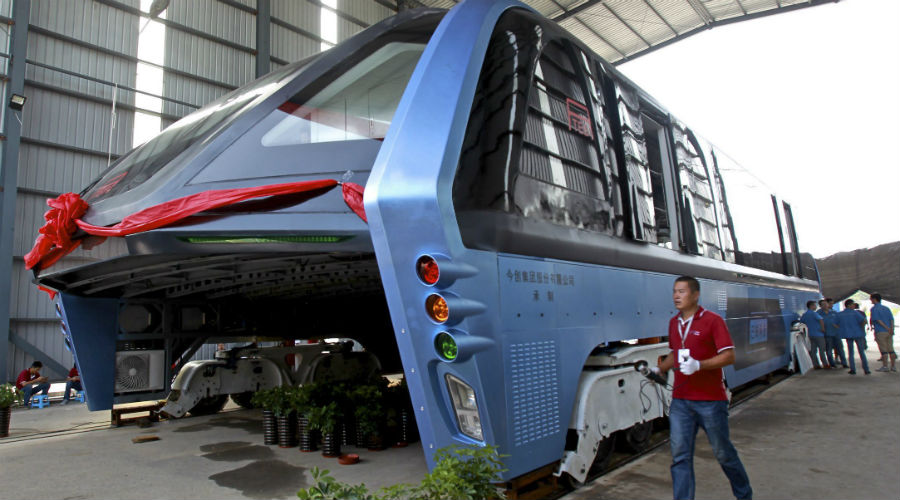 Deze bijzondere bus die de oplossing voor het grote fileprobleem in China zou zijn, blijkt een oplichterstruc.