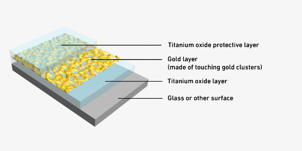 De coating is als volgt opgebouwd. Een minuscuul dun laagje goud – twaalfmaal zo dun als bladgoud (wat dient als versiersel van bijvoorbeeld beelden of schilderijlijsten) – is gesandwicht tussen laagjes titaniumoxide. Deze twee lagen zorgen voor isolatie en de bovenste geeft ook nog bescherming tegen schade.