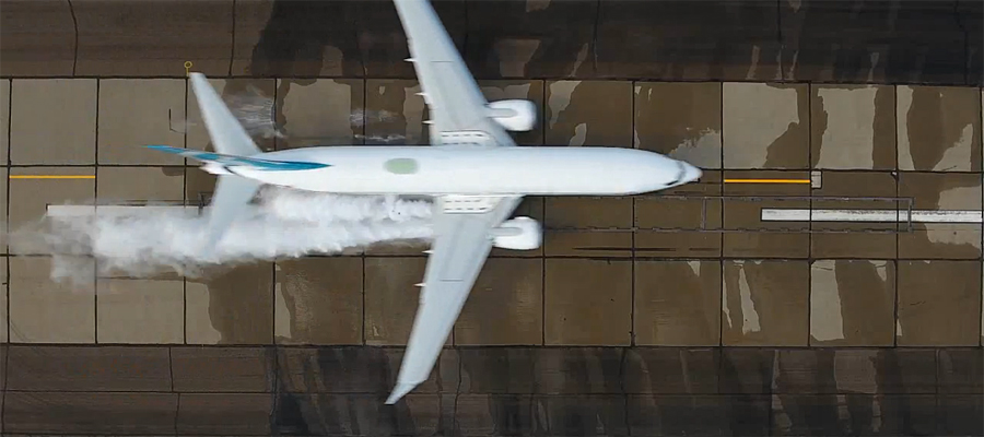 Precisie is heel belangrijk. De waterspray moet het toestel namelijk exact daar raken waar de test voor bedoeld is. In het geval van de test in deze video: de inlaat van de APU. En dat is waar de drone in beeld komt. Of beter gezegd, waar de drone het toestel van boven in beeld brengt. En ja, dat levert naast de validatie van de test dus ook gewoon gave beelden op!