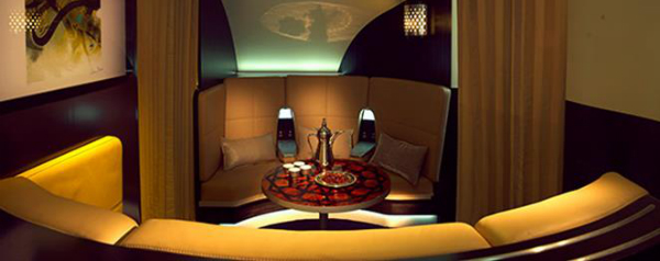 De stewardess is ingeruild voor een butler die aan de prestigieuze Londense Savoy Butler Academy heeft gestudeerd. Natuurlijk is er Wi-Fi en zijn de lampen naar eigen inzicht te dimmen. Bovendien heb je de beschikking over drie privévertrekken. Ten eerste een woonkamer met onder meer een bank met massagefunctie, een gekoelde minibar en een LCD-tv van 32 inch. Ten tweede een badkamer ensuite met een toilet, douche en badjassen. En ten derde een slaapkamer met Egyptisch katoen en nog een LCD-tv, al is deze met ‘slechts’ 27 inch wel een maatje kleiner.