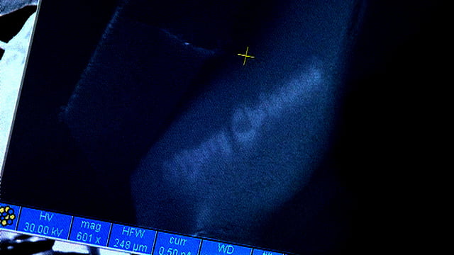 Voor hun ‘trucje’ koelden ze sneeuwkristallen met vloeibare stikstof en legden ze die onder een elektronenmicroscoop. Vervolgens brandden ze de woorden ‘Merry Christmas’ met een gebundelde ionenstraal op een 50 micrometer (5 honderdsten millimeter) groot vlakje op het uiteinde van een sneeuwkristal.