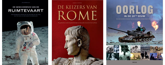 Het gaat om De keizers van Rome ( € 49,95, ISBN 978 90 447 2673 2 ), De geschiedenis van de ruimtevaart ( € 29,95, ISBN 978 90 447 2709 8 ) en Oorlog in de 20ste eeuw ( € 39,95, ISBN 978 90 447 2846 0 ).